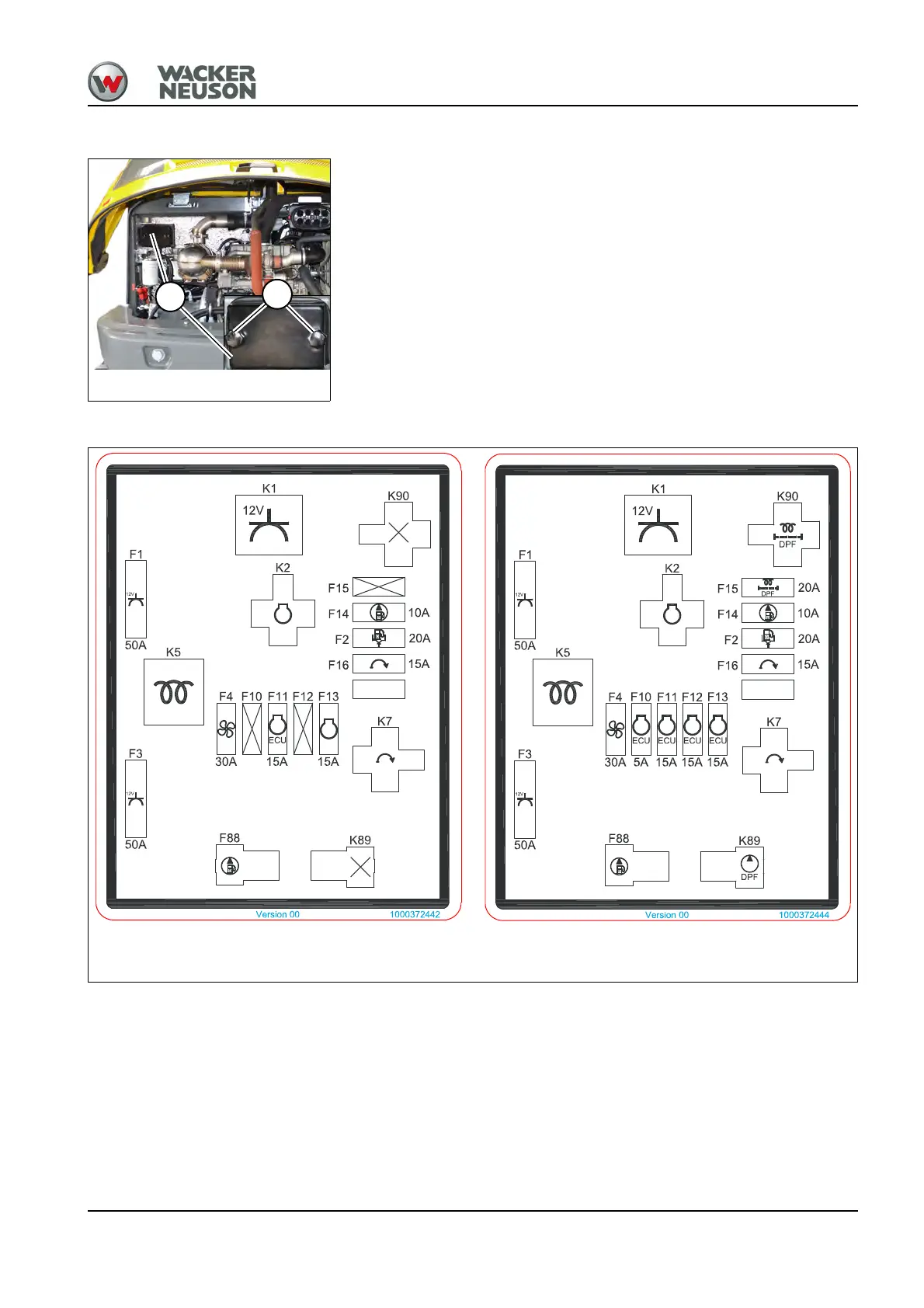 The main fuse box A is located on the partition wall in the engine