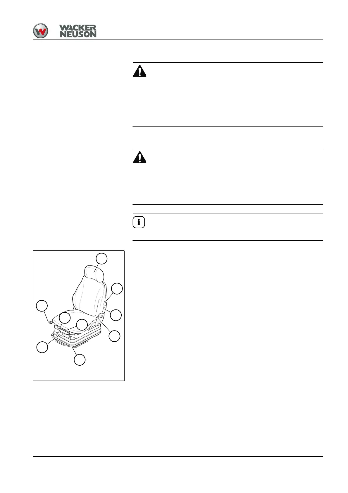 ► Ensure that the seat is correctly adjusted to the operator’s weight