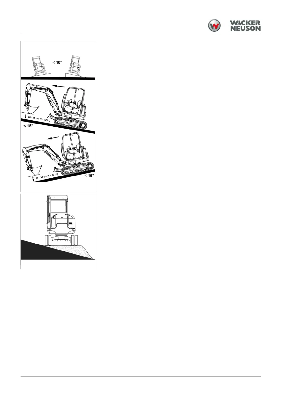 • Do not perform vehicle travel on slopes steeper than 15°.