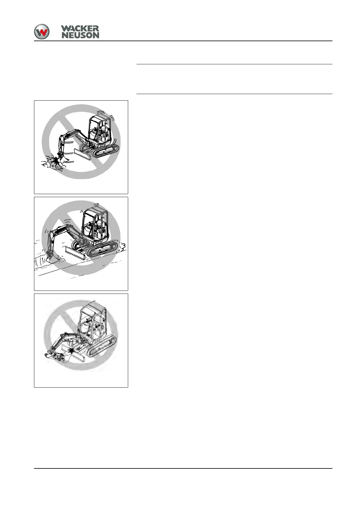 Do not use the swivel force of the upper carriage to tear down walls or to