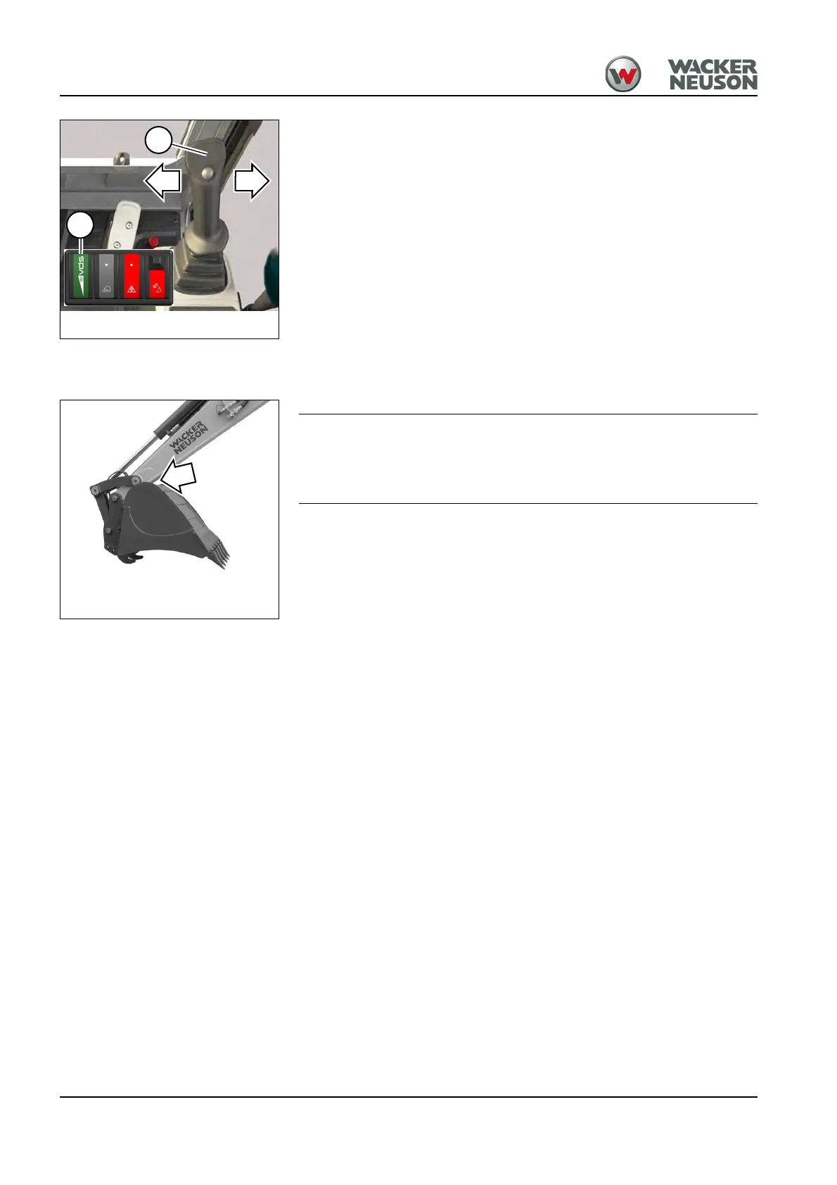 ► Do not tilt out the bucket completely if it is used as a shovel bucket.