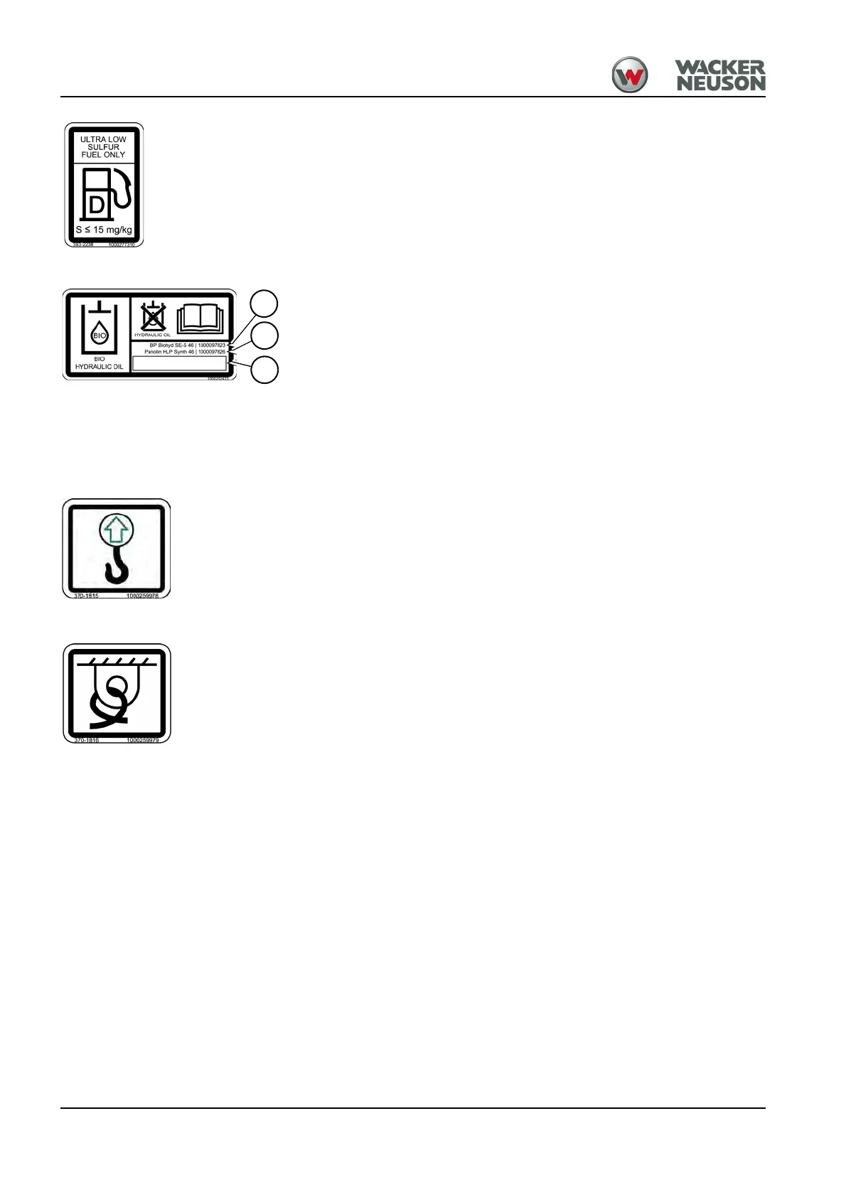 Two adhesive labels each on dozer blade, rear and front travel gear, and