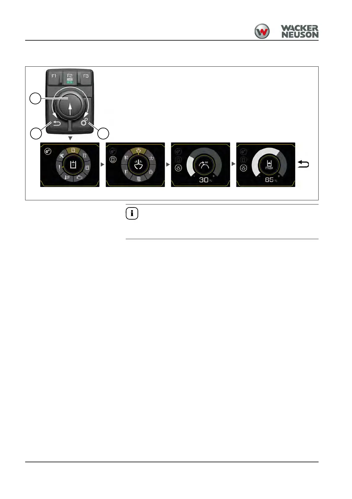 Example for AUX I. The operation for AUX II, AUX III and the dozer blade
