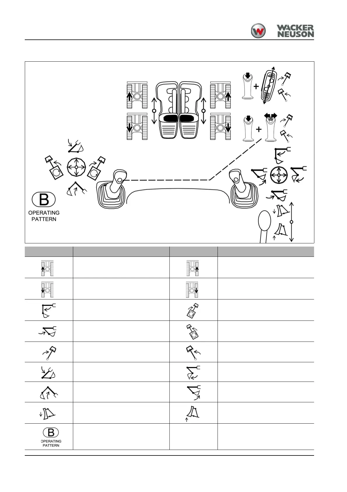 Overview of pedals and control levers (Operating Pattern B)