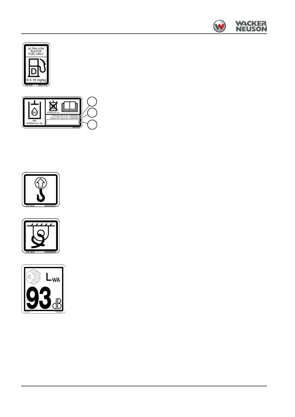 Indication of sound power level produced by the machine.