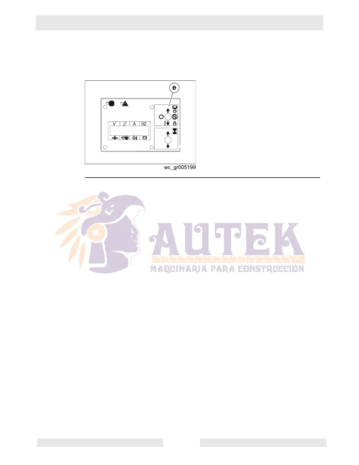 El interruptor de arranque (e) del motor está situado a la derecha del panel de control.