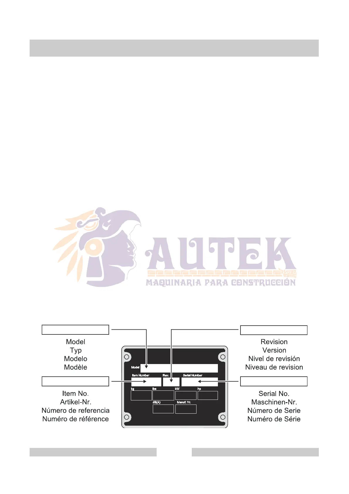 de que la placa de identificación sea destruida o perdida. En todos los pedidos para