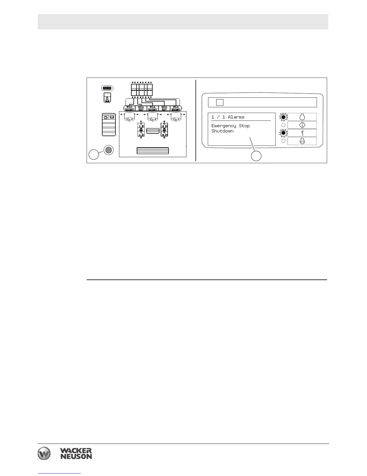 ■ The LCD panel (b) displays a flashing “Emergency Stop” message.