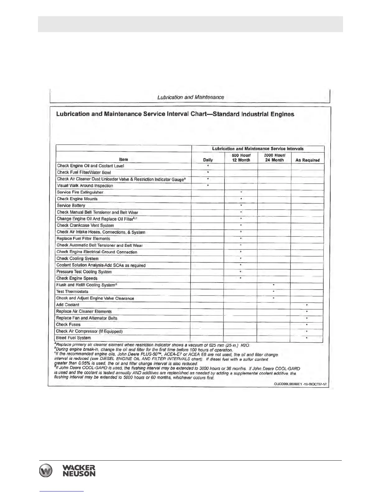 NOTICE: The standard oil change interval on Wacker Neuson Mobile Generators