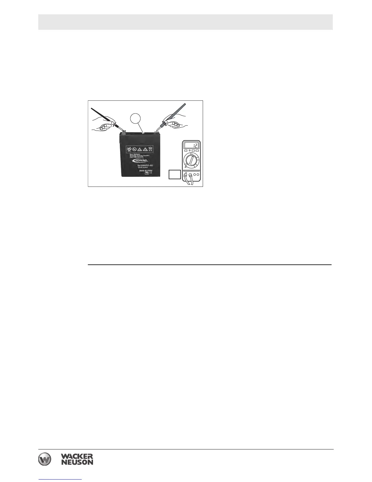 c. Measure the voltage. If 12–14 VDC is not measured, replace or recharge the