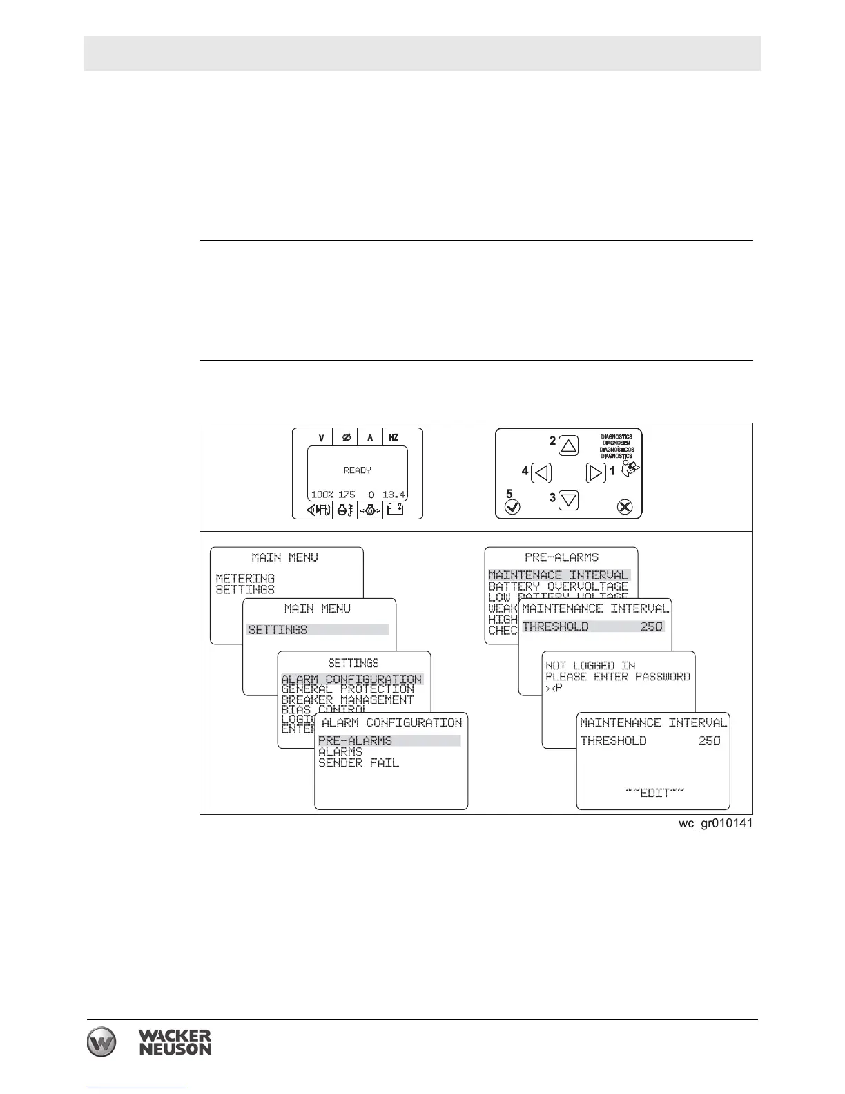 1. Press the right arrow button (1) to access the MAIN MENU.