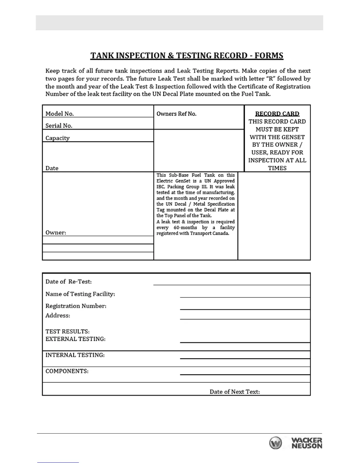 User’s Information for Transport Canada Fuel Tank