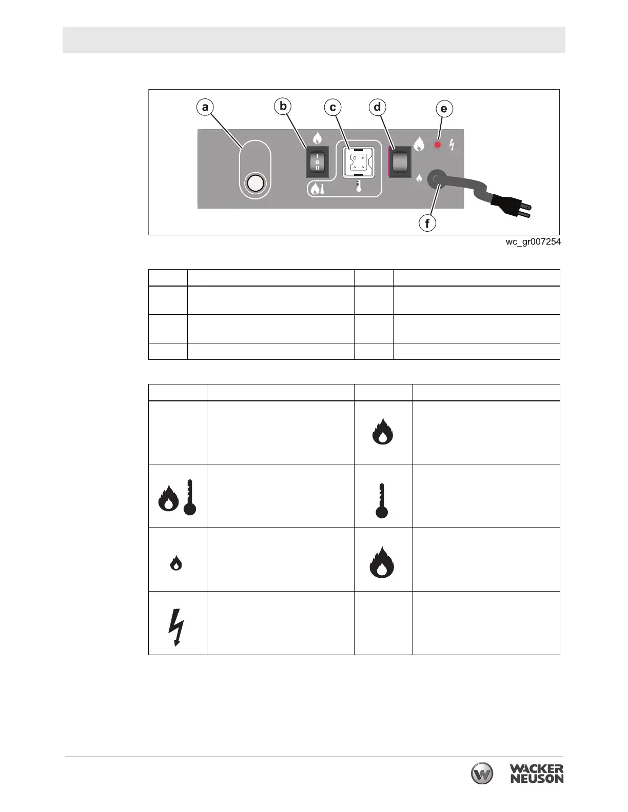 c Remote thermostat receptacle f Power cord