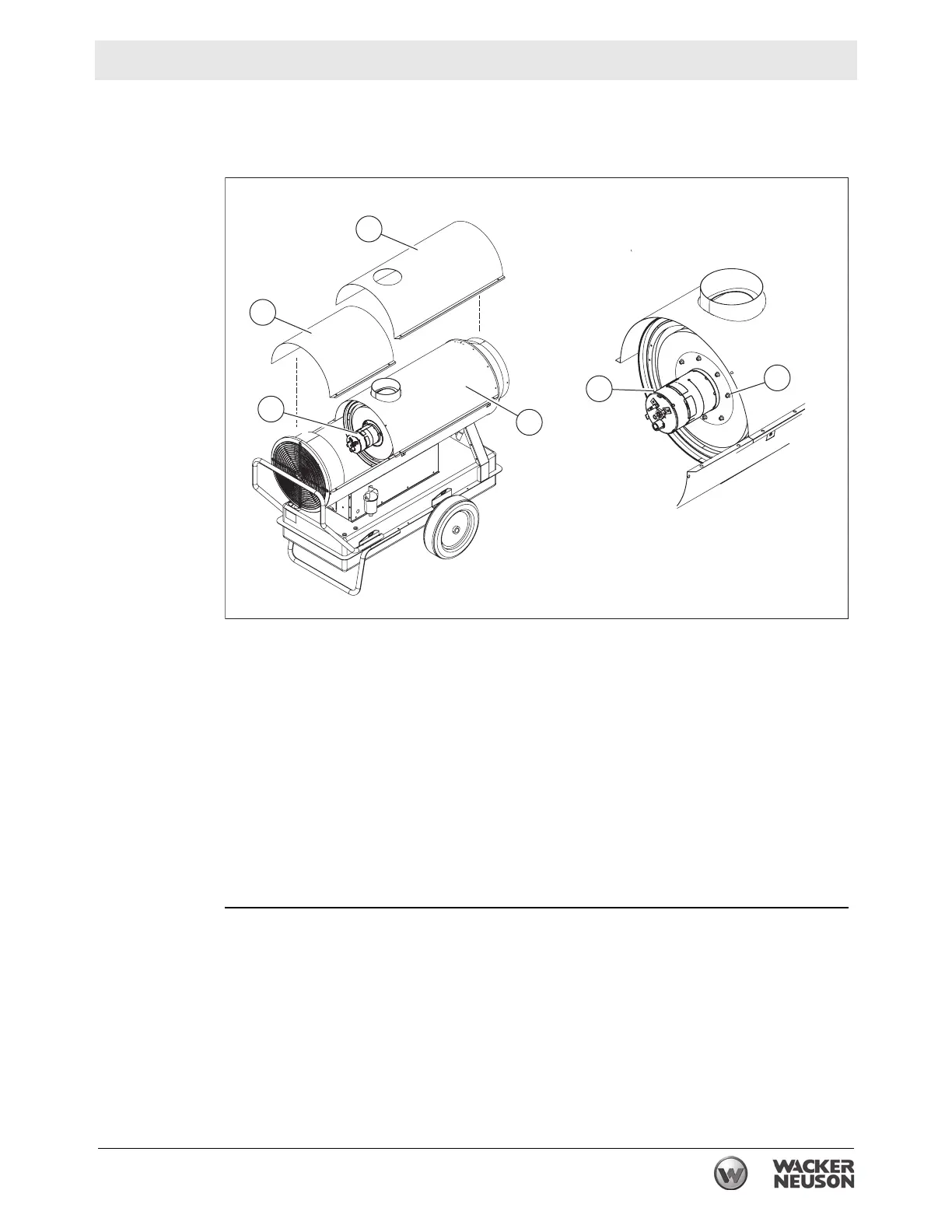 4. Remove the bolts that secure the heat exchanger (e) to the lower shell.