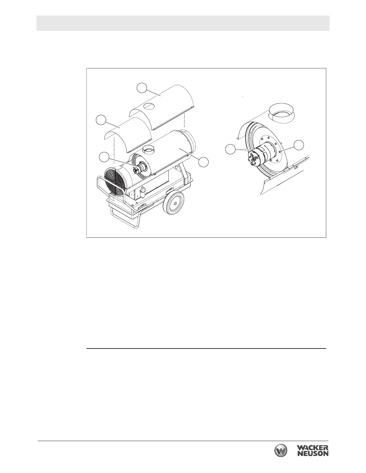 4. Remove the bolts that secure the heat exchanger (e) to the lower shell.