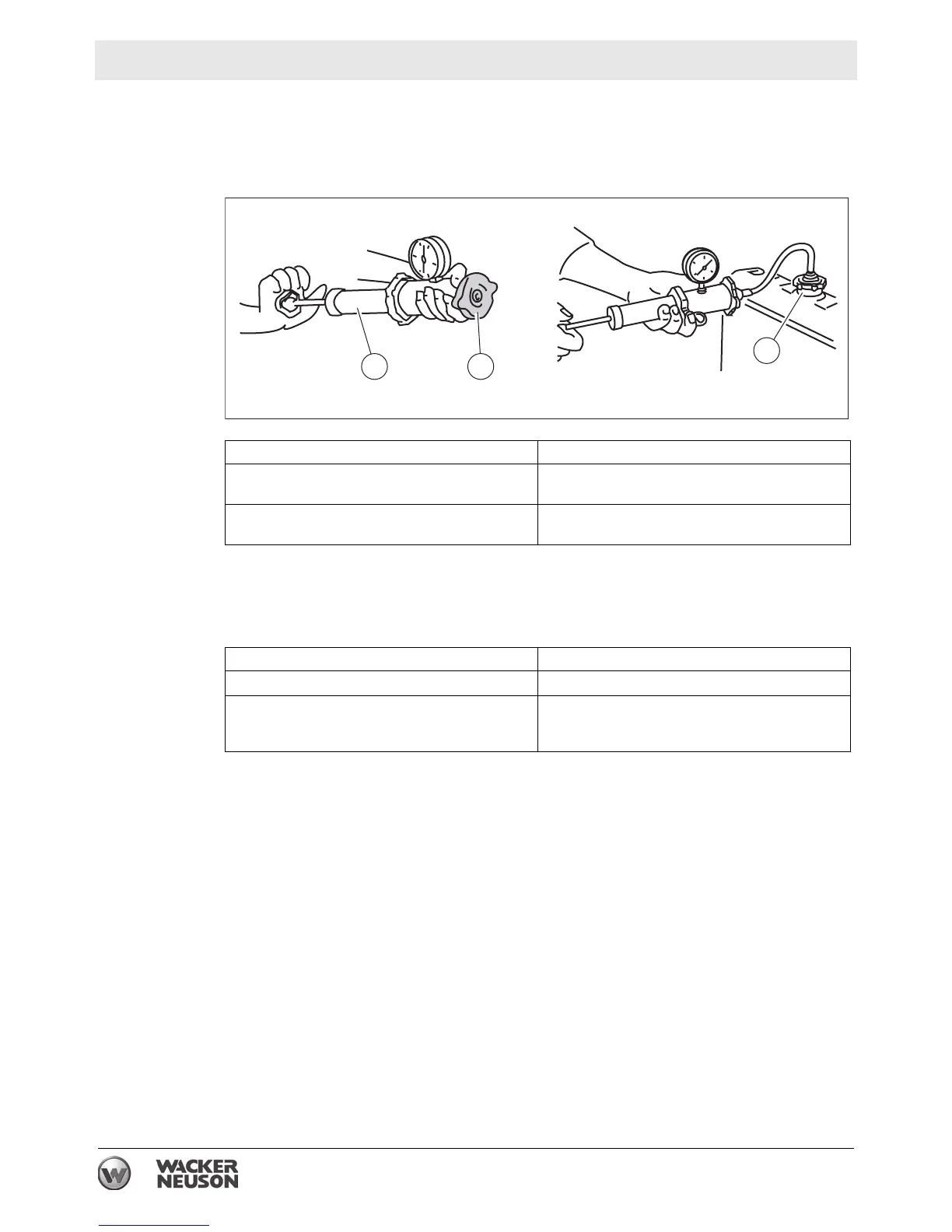 4. Pressure test the radiator cap, observing the pressure reading on the tester.