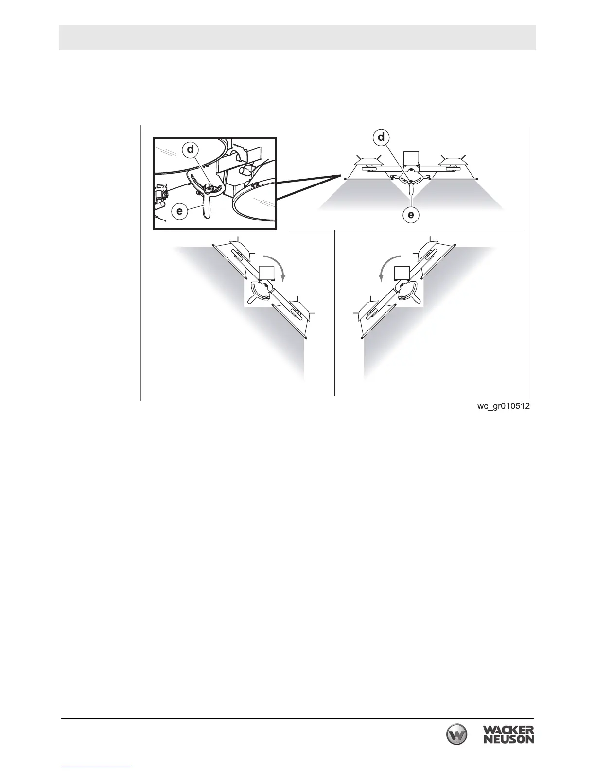 1. Loosen the knob (d), grasp the handles (e), and tilt the light bar to the desired