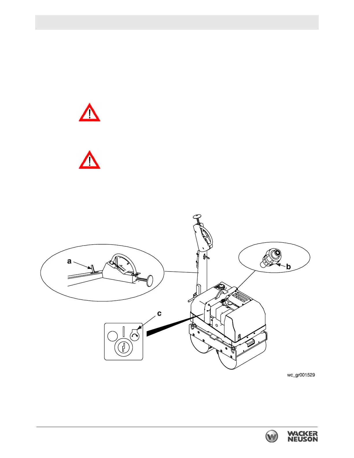 4.8.3 Turn the ignition switch (c) to start the engine.