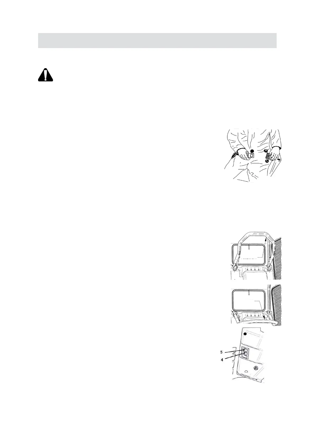 The machine must always be driven with safety bar lowered and safety belts fastened.