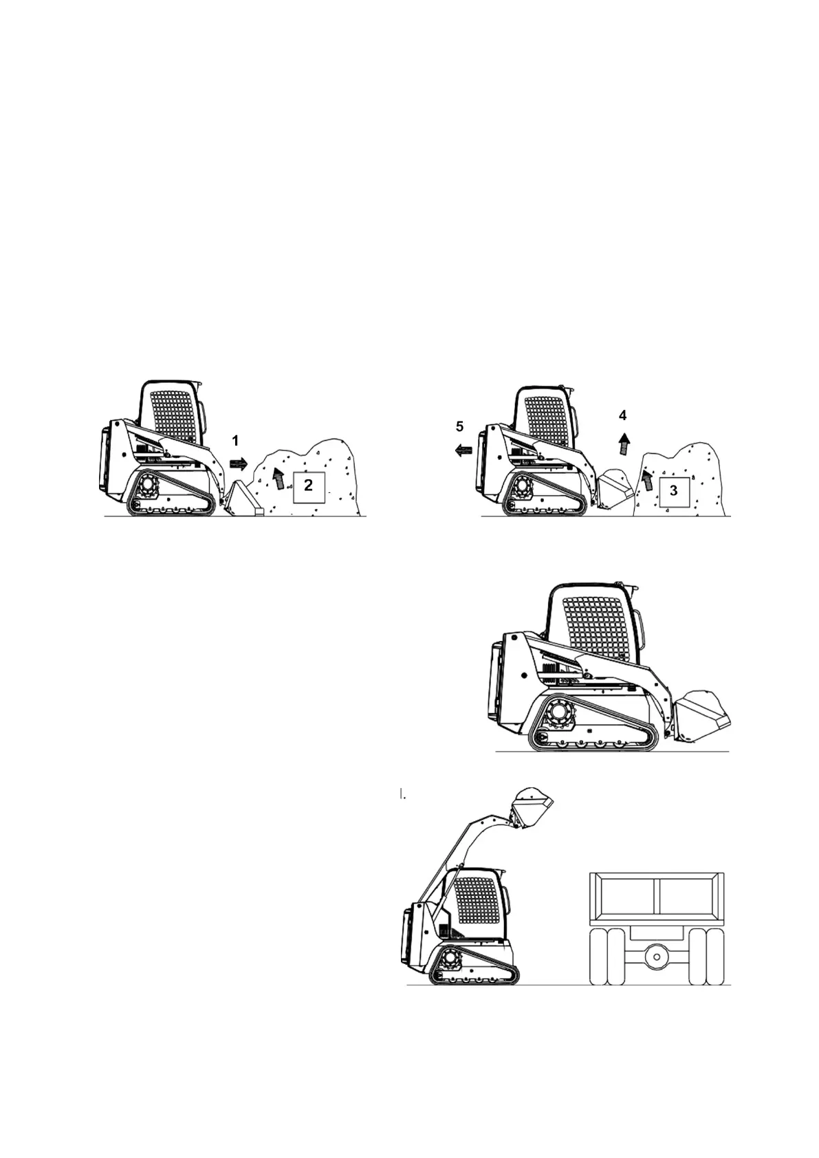 5 - Pull back, lower the lifting arms and move, with the shovel low, towards the place of unloading.