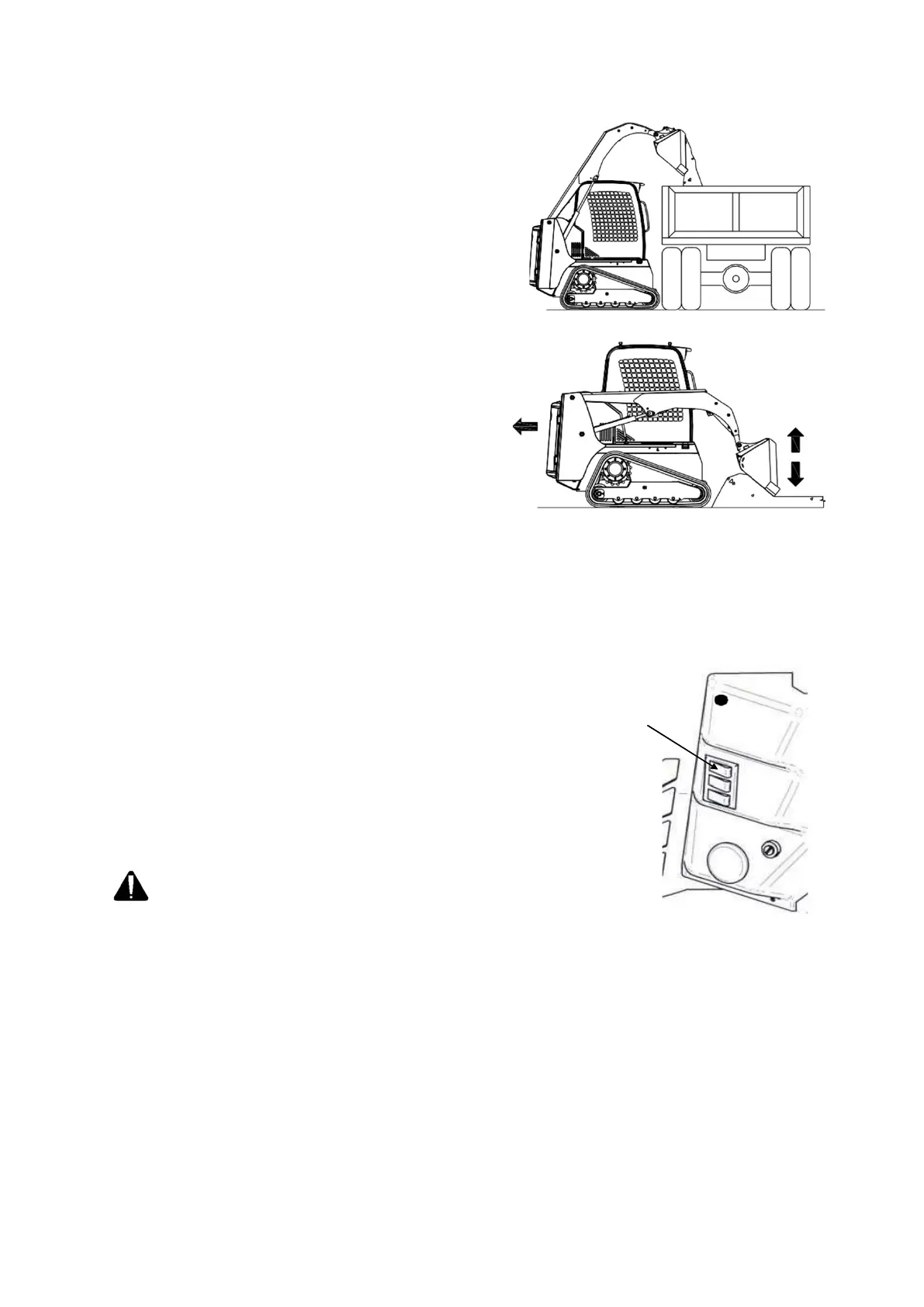 Raise the lifting arms inclining the shovel forward until obtaining an angle of 45° between the base