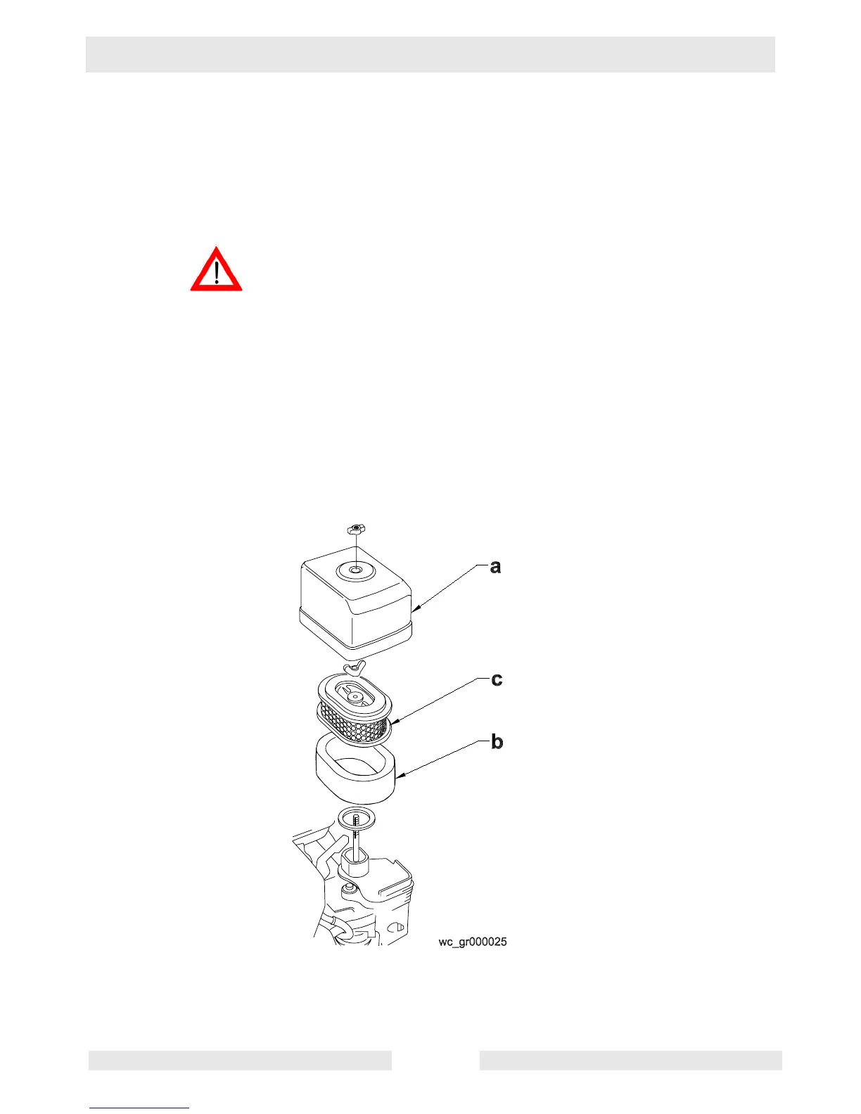 4.3.3 Tap paper element (c) lightly to remove excess dirt. Replace paper