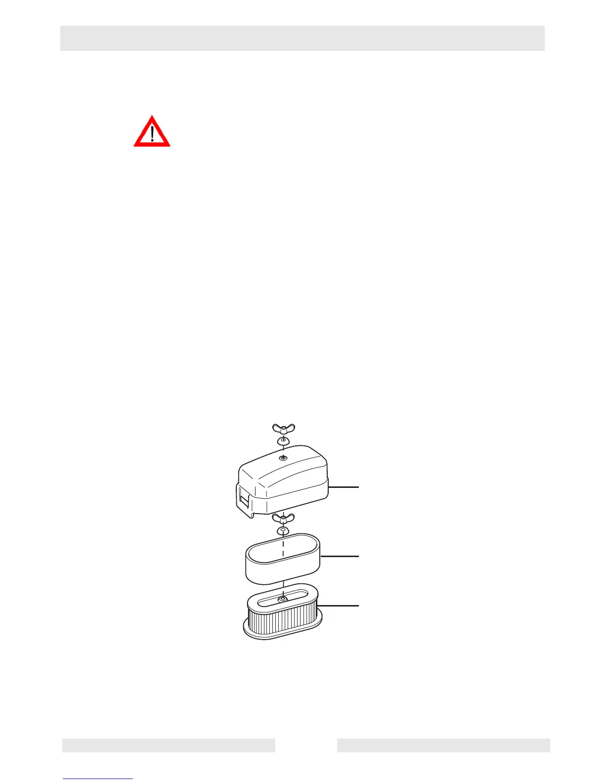 4.3.2 Wash the foam element (b) in a solution of mild detergent and warm