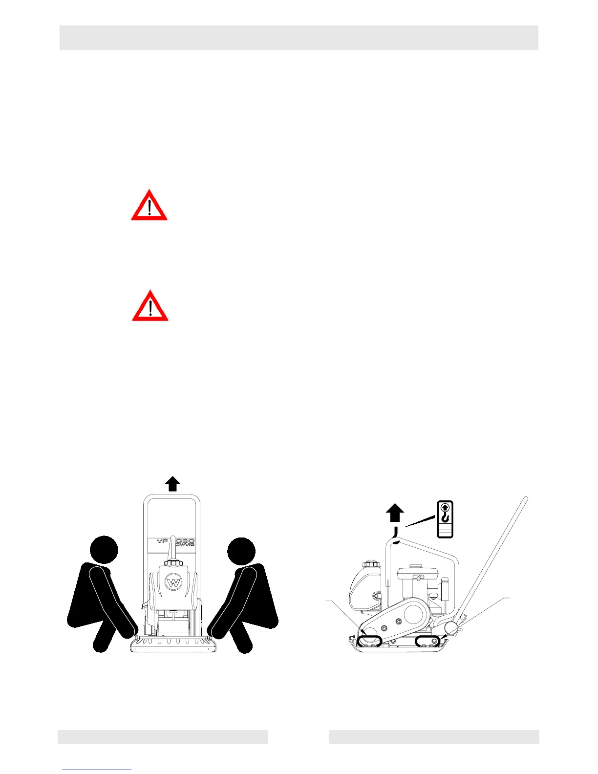 NOTICE: DO NOT lift the vibroplate by its guide handle. The vibroplate