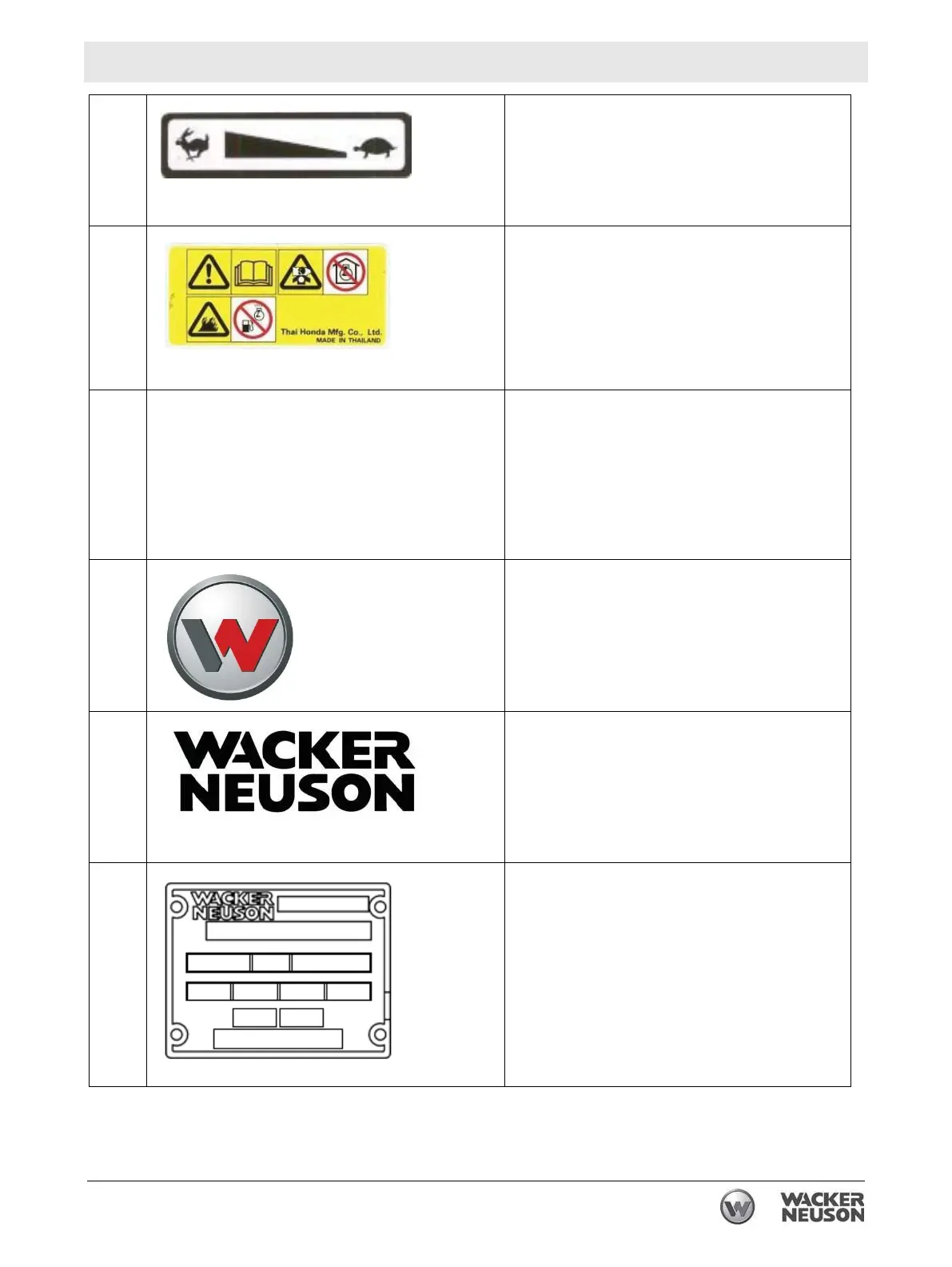 A nameplate listing the model number, item