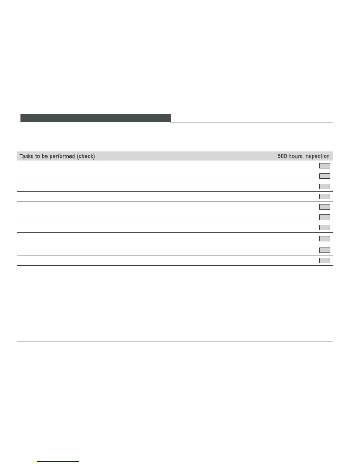Tasks to be performed (check) 500 hours inspection