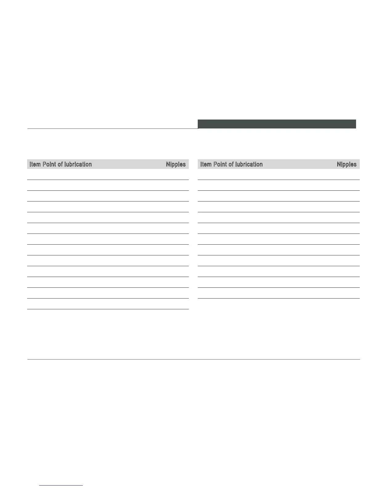Item Point of lubrication Nipples