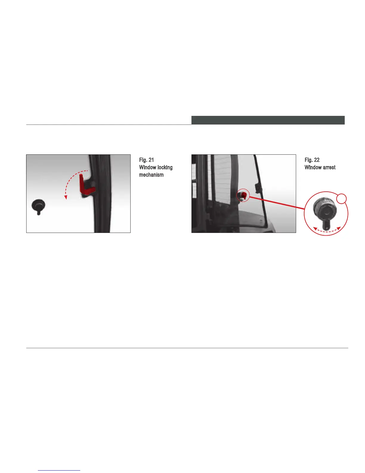Activate lever Item 1 to release the window arrest (Fig.