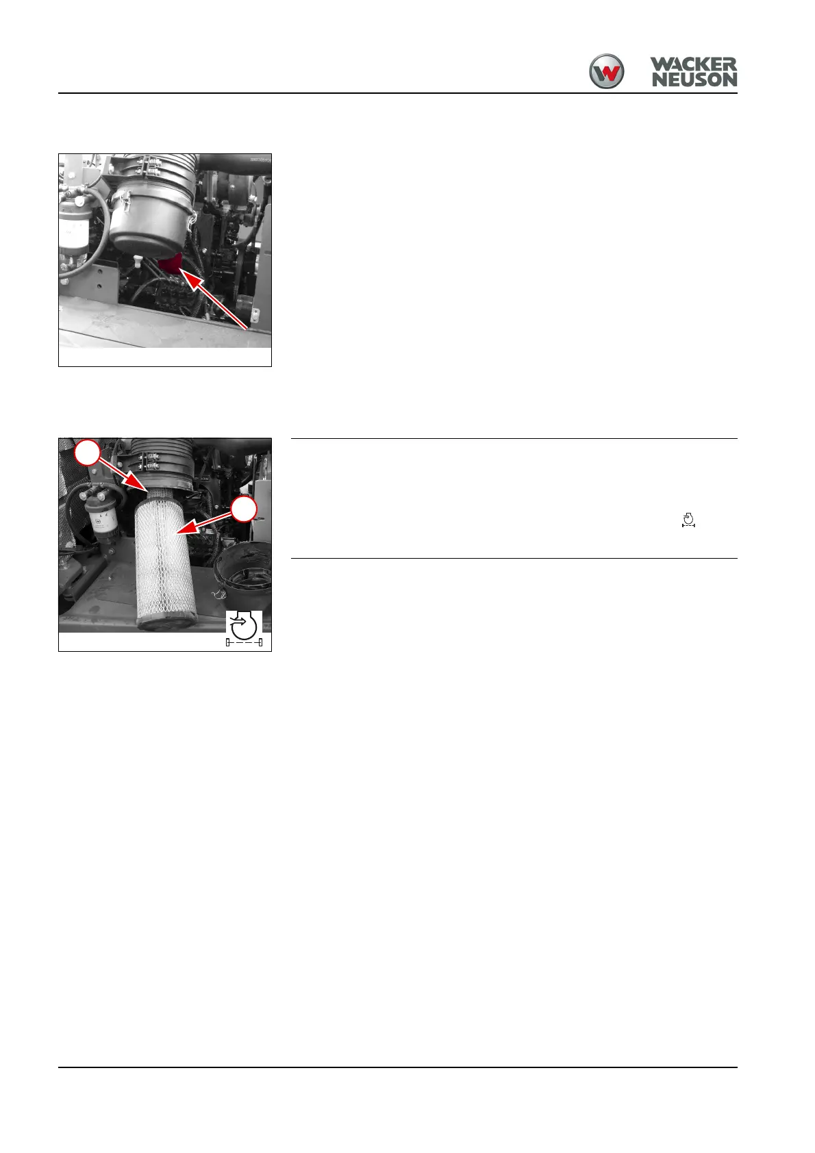 5. Replace the main engine air filter H if it is too heavily contaminated.