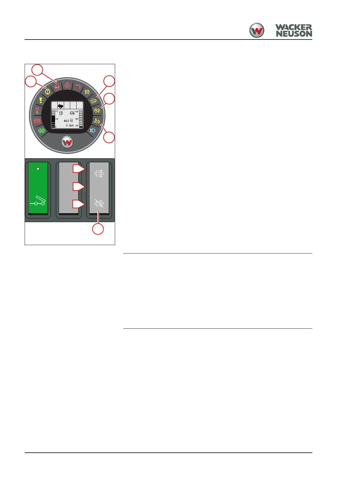 • Position I = interrupts regeneration of the diesel particulate filter.