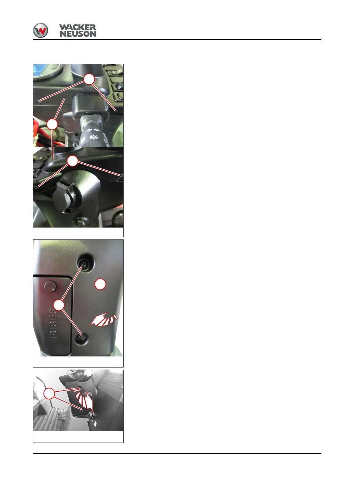 2. Unscrew screws 1 on both sides of the instrument panel 2.