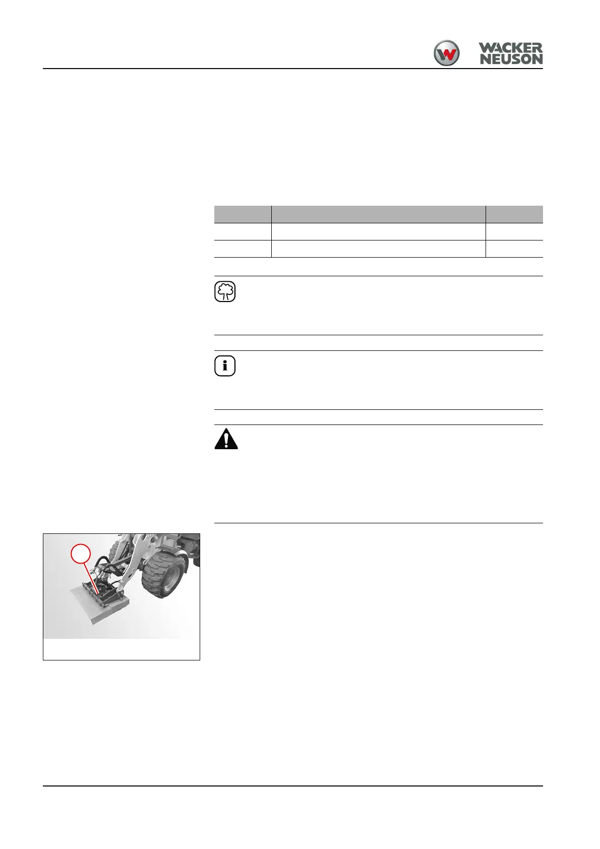 • Suitable receptacle for collecting the hydraulic oil