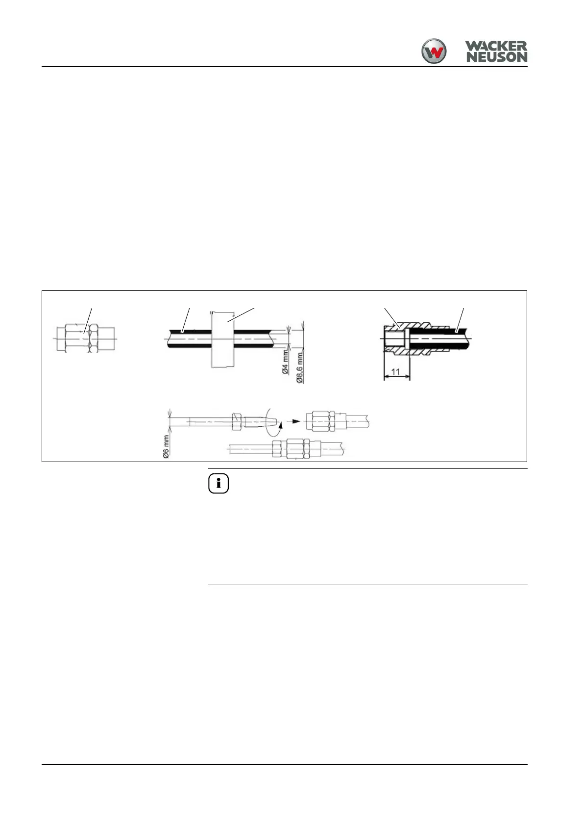 3. Install the threaded sleeve (anticlockwise) on the hose (size 11 mm,