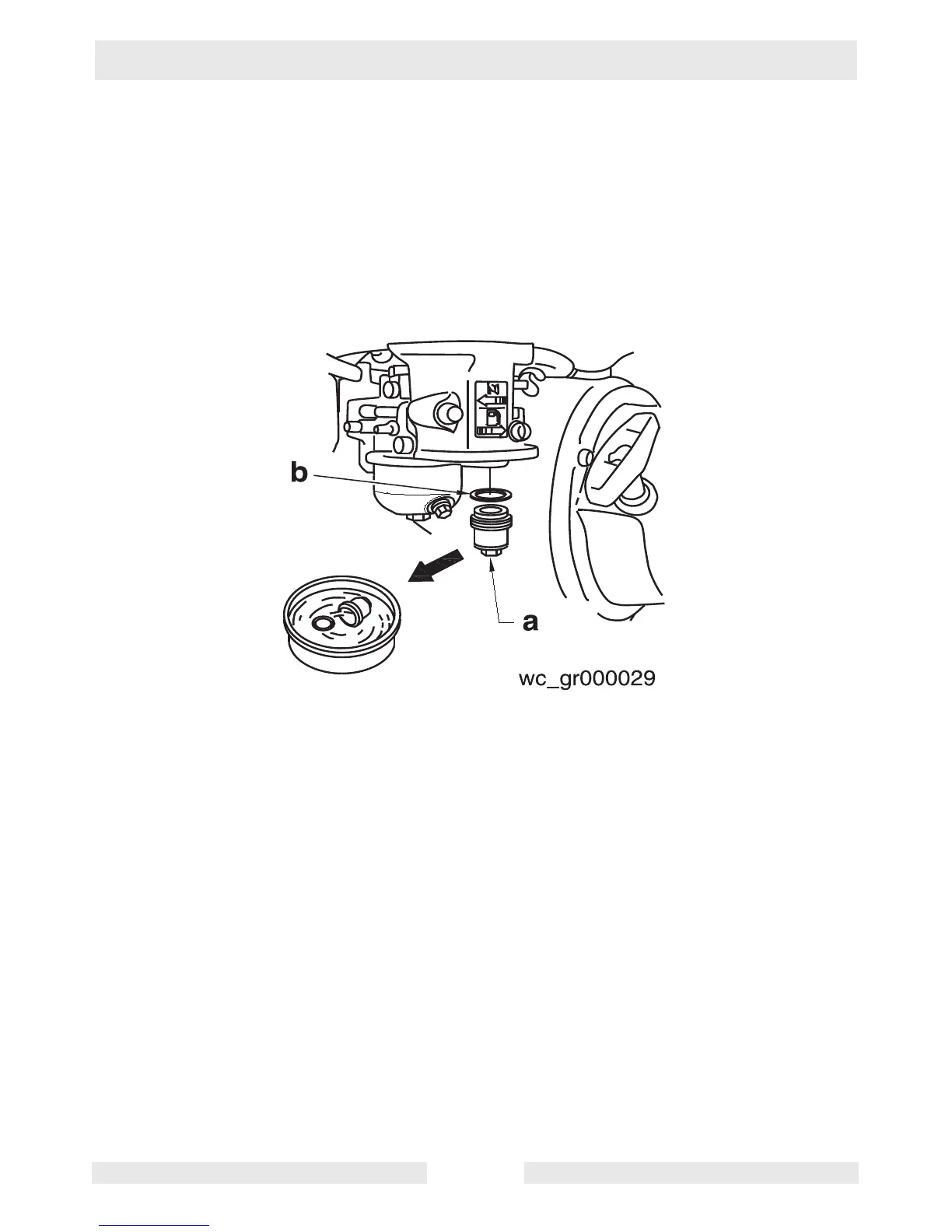 5.9.2 Remove the sediment cup (a) and the O-ring (b).