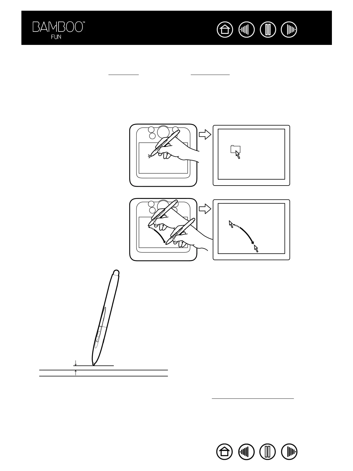 The Bamboo Fun pen positions the pointer (or cursor) on your screen. You can position the screen cursor