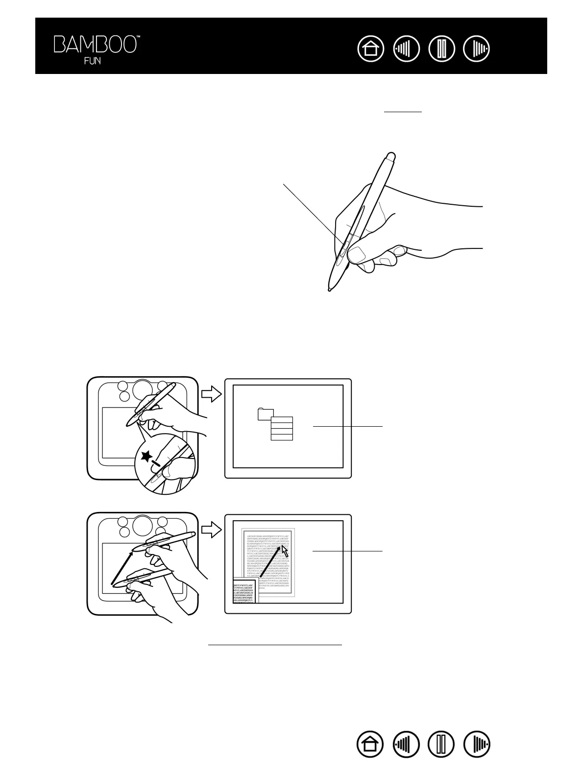 The Bamboo Fun pen has two buttons. Each button has a programmable function that is selected when you