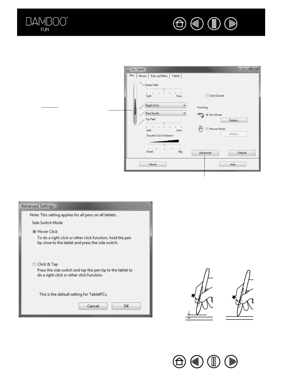 Select the PEN tab to change the functions assigned to the buttons. Each pen button can be set for a variety