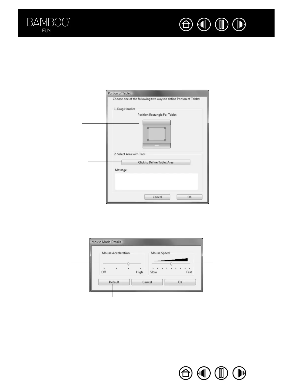 • PORTION. Allows you to select a portion of the tablet active area for tablet to screen mapping.