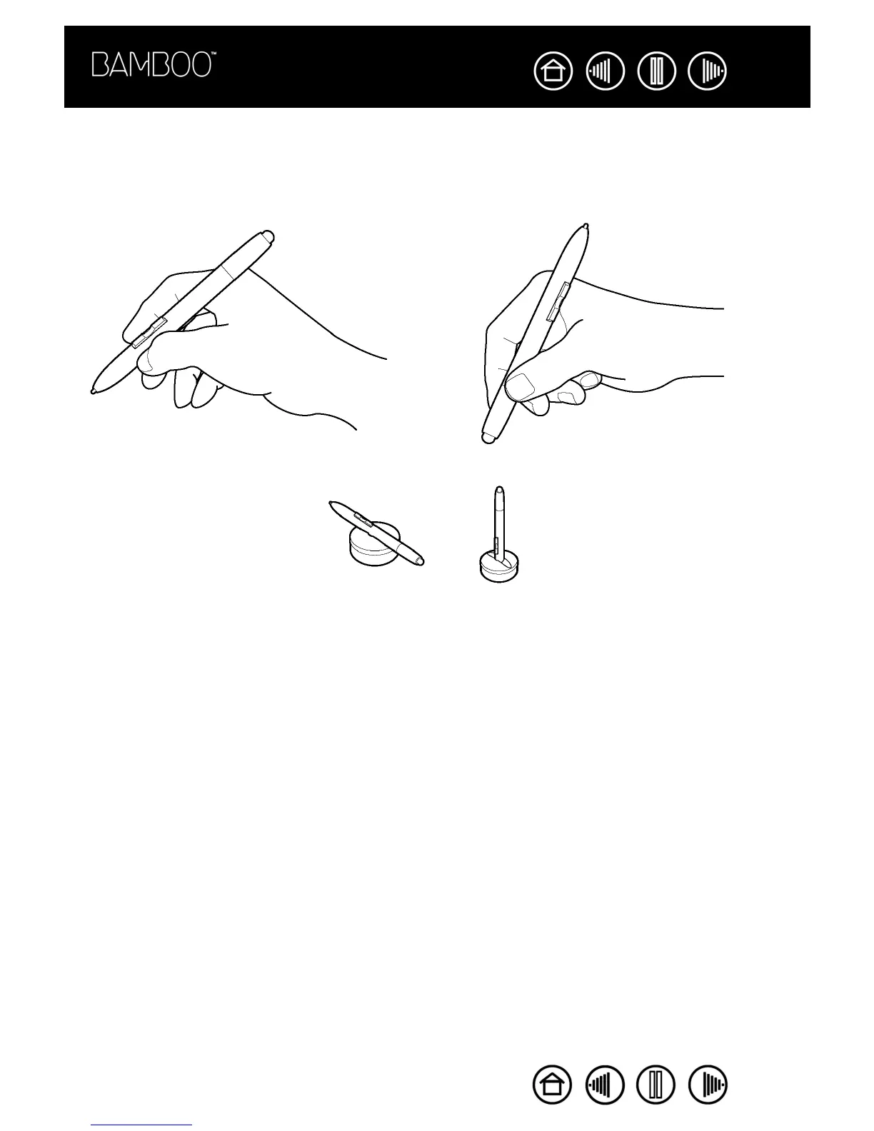 Hold the Bamboo pen like you would hold a normal pen or pencil. Make sure the pen buttons are in a