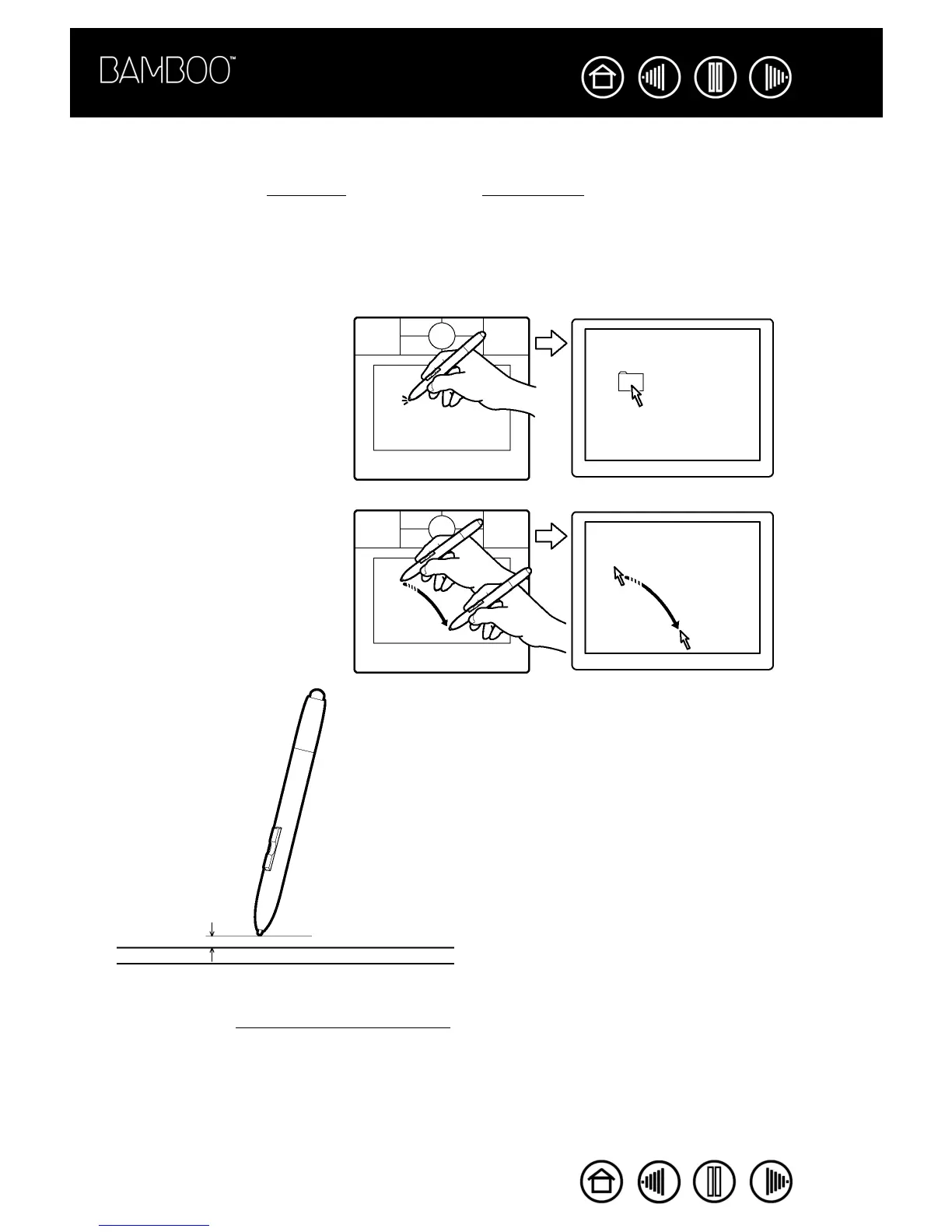 The Bamboo pen positions the pointer (or cursor) on your screen. You can position the screen cursor two