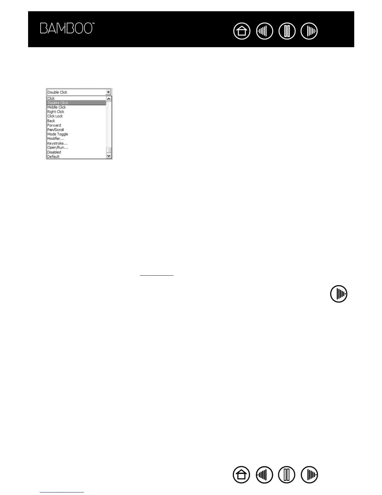 The following options are available for pen and tablet button settings. Please note that not all options are