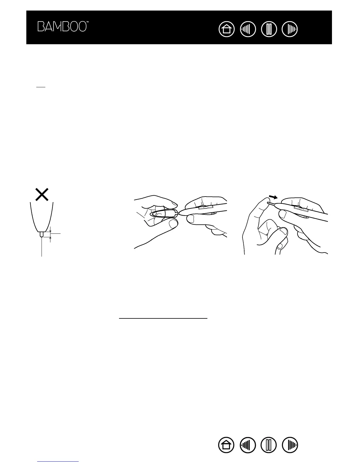 Warning: Prevent children from swallowing the pen tip or pen buttons. The pen tip (nib) or pen