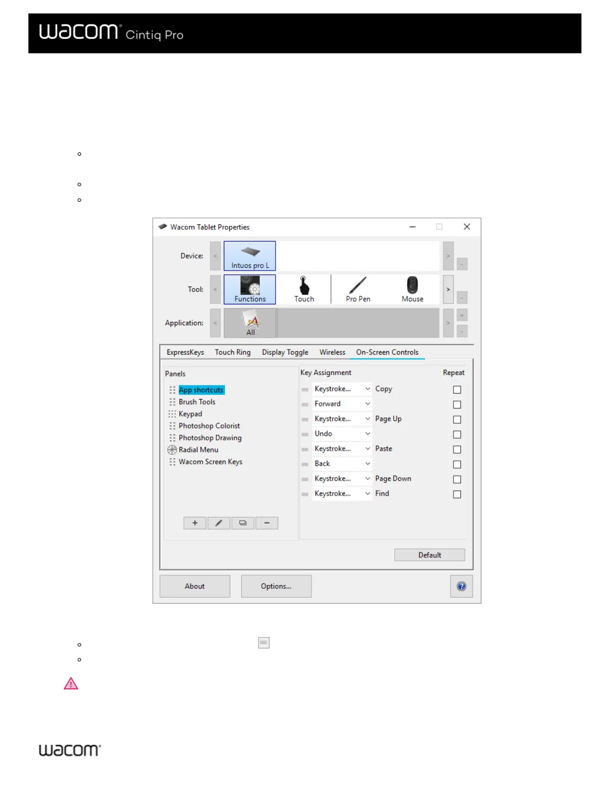 Important: Assign your On-Screen Control to a customizable component, like an ExpressKey or pen button, so that you