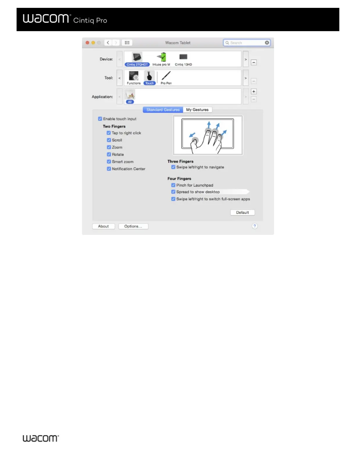 On the Touch tabs, position the screen cursor over an option to see a static image of that function. If you do not choose a specific
