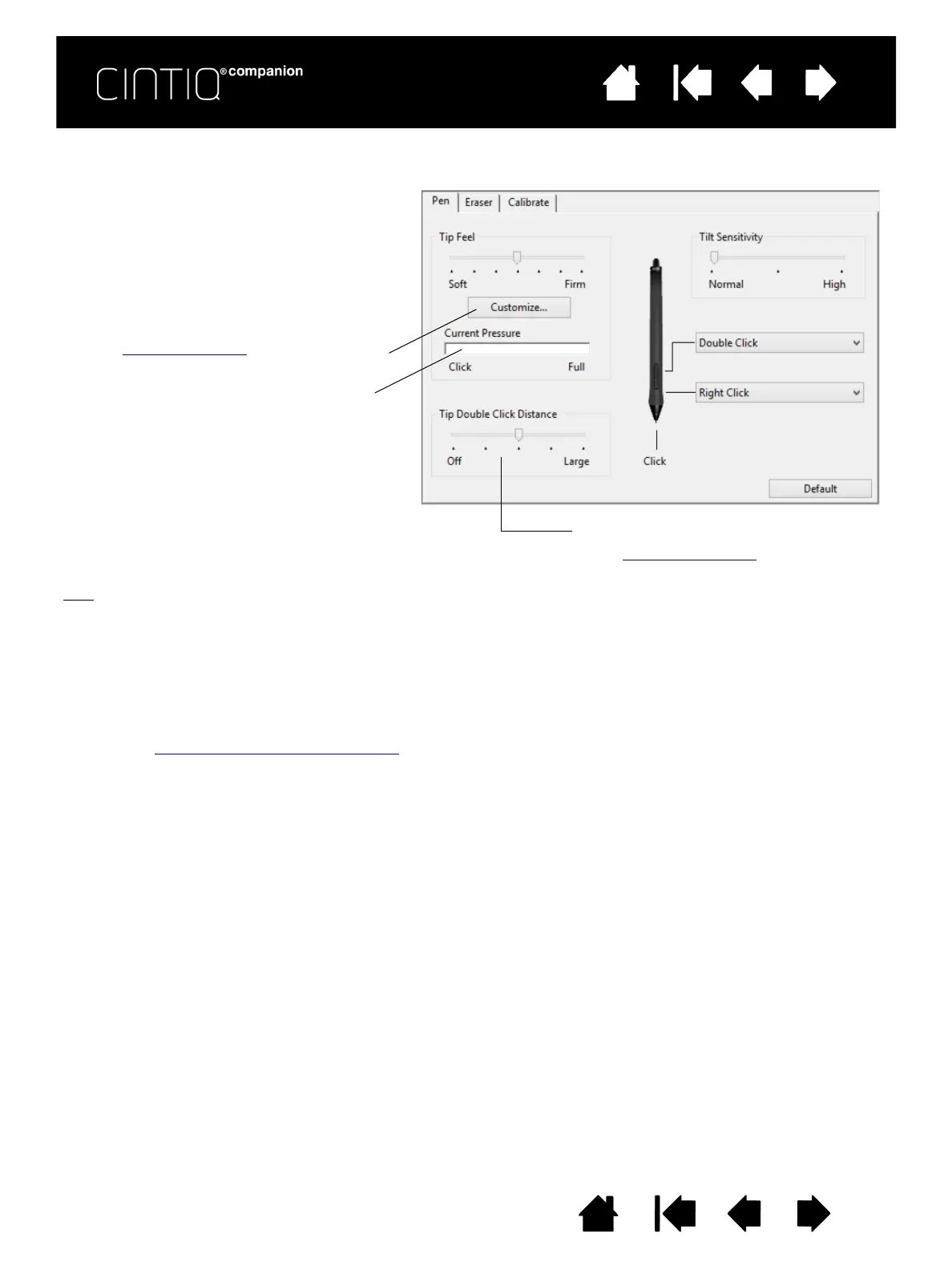 • A large double-click distance may cause a delay at the beginning of brush strokes in some drawing