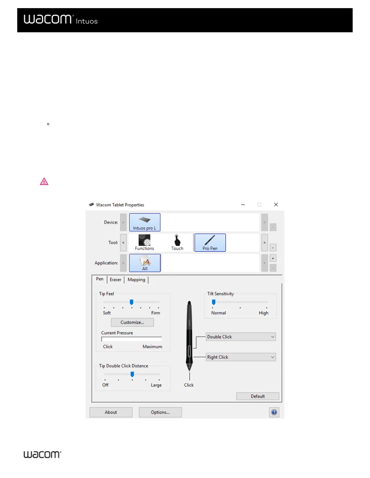 Important: The options available in Wacom Tablet Properties will vary depending on your device.
